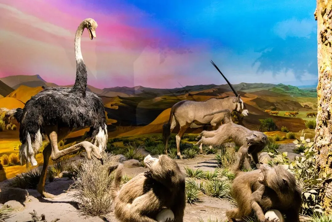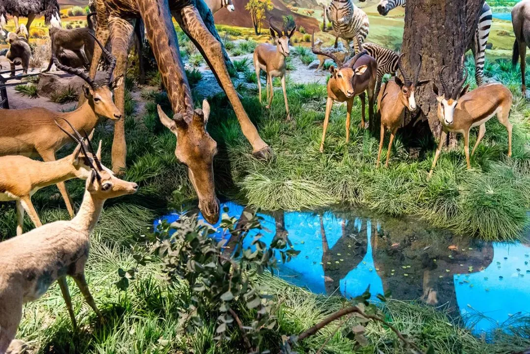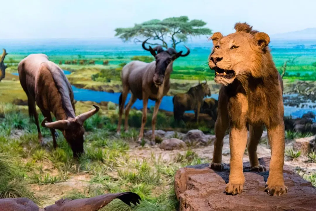 展览采用360度环形全景画展示技术,地面地形与背景画的自然衔接展现无限透视的原野效果,配合开放式动物景观这一新颖的展示方法,向观众展示恢宏震撼的非洲原野。