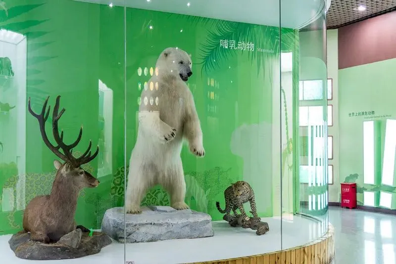 陈列中的动物标本,不仅包括国家一、二类保护动物,而且还有许多国外提供的部分珍贵标本。