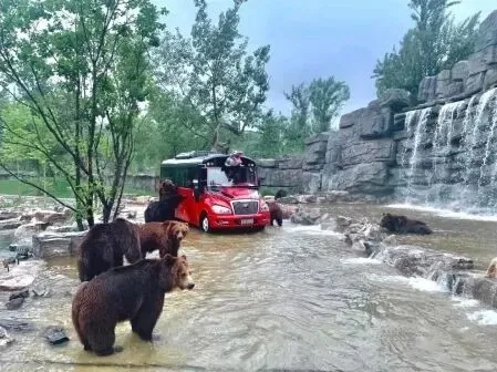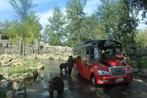 北京野生动物园猛兽体验区游览路线全长3.6千米,沿途设置8个展区,展示棕熊、东北虎、白虎、狼、黑熊、斑鬣狗、非洲狮、猎豹等猛兽,真实地还原了猛兽原始生存环境;游客需乘坐野生动物观光车进行游览。