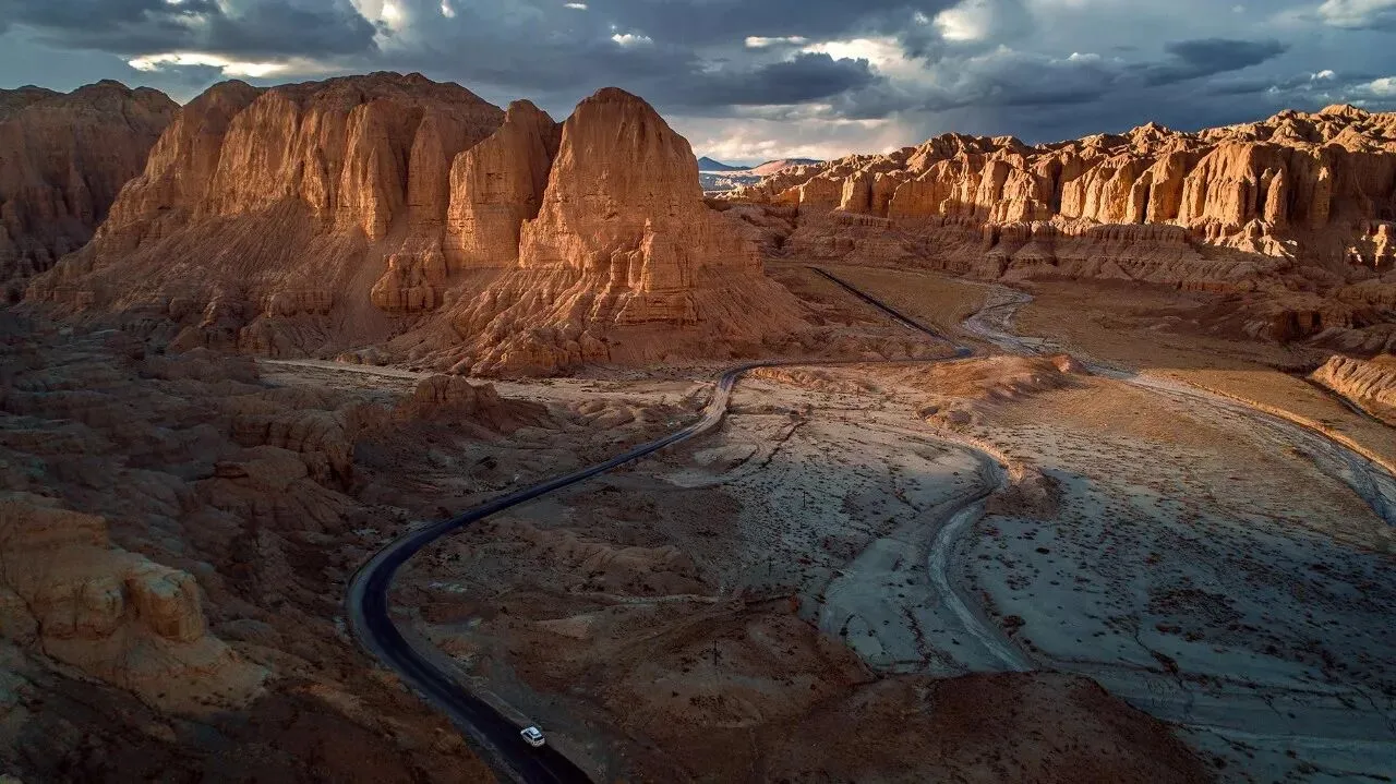 阿伦:举个例子,这次我在由北向南穿越柴达木盆地的时候,在腹心地区确实遇到了极端天气,那时候精灵4 Pro才升空不久,突然一股强风就吹了过来(柴达木盆地的风可是出了名的大),但是为了拍摄我还是决定冒险继续飞行。但是在这种情况下耗电其实是相当厉害的,于是我干脆就选择逆风飞行进行拍摄,那样即使低电量警报响起,我也可以借由顺风快速返回起点。但要是龙卷风….就不要作天作地了,老老实实待在地面上吧。