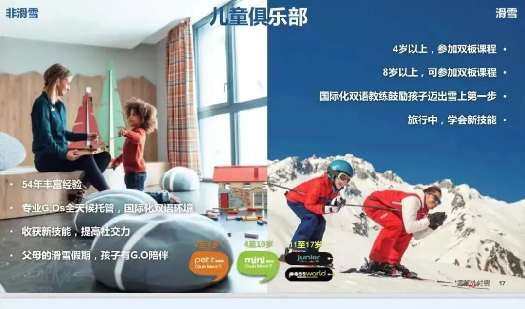 由G.O带领,体验游泳、花园寻宝、做手工、室内游乐,大一点的孩子还可以去攀岩、足球、空中飞人、骑单车,不仅青少年可以,成人也可以在Club Med体验一系列户外活动。这一切都是免费的。