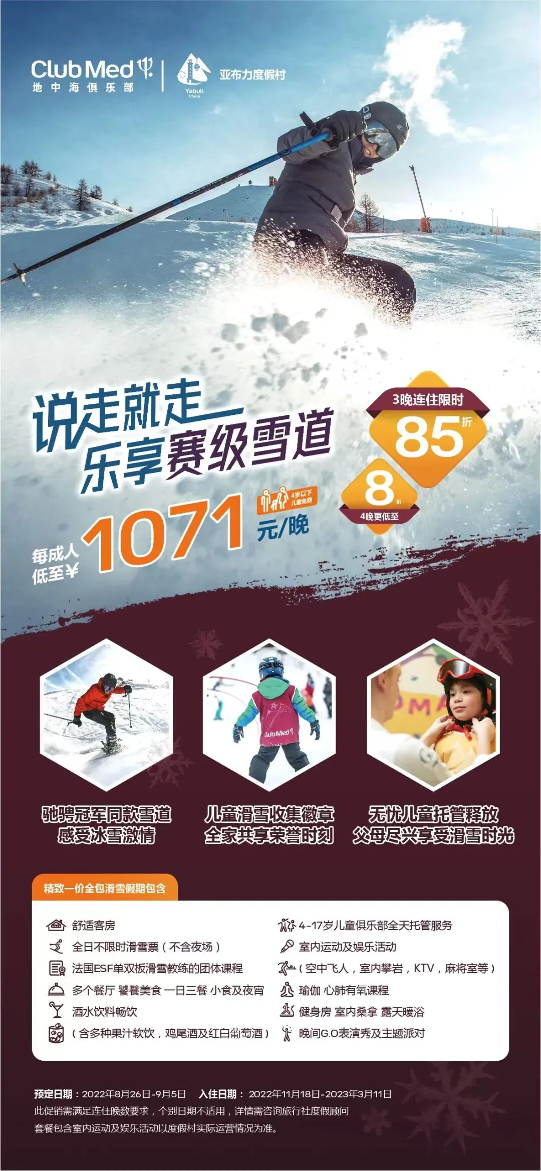 1 想去滑雪,去黑龙江亚布力Club Med度假村,全国规模最大的雪场,3/4晚滑雪+酒店吃喝玩乐一价全包,人均到手价 1071元/晚