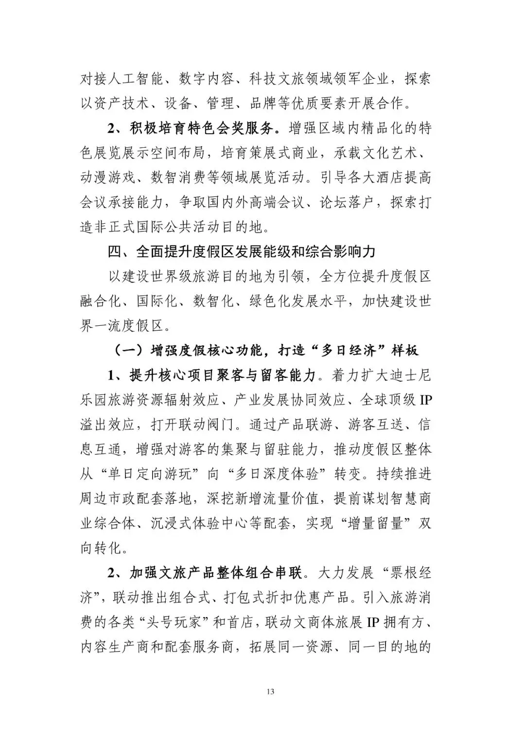 多向发力保障迪士尼乐园高品质稳定运营。推动第三个扩建片区蜘蛛侠高速过山车项目建成开放。推动乐园标志性主题景点“翱翔·飞越地平线”完成扩建,持续推进乐园基础设施改造和娱乐演出升级,探索导入网球中心、马术中心、萌宠酒店等项目,进一步丰富核心区旅游度假功能。推进第三家主题酒店建成运营,第四家主题酒店有序建设、东南地块酒店项目建设提速,推动比斯特扩建项目加速落地。进一步盘活核心区内场地、水域等资源,积极引进具有品牌优势、话题热度的精品活动项目。到“十五五”期末,迪士尼乐园一期扩建项目运营达效,过渡性区域基本建成投入运营;新建和扩建一批商业、酒店项目,核心区旅游度假功能进一步增强。