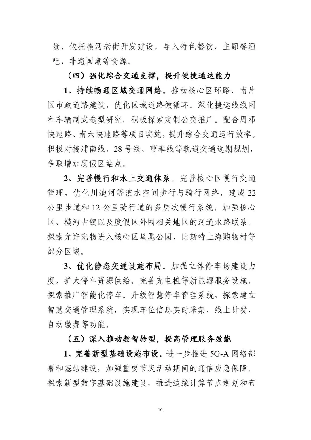 完善慢行和水上交通体系。完善核心区慢行交通管理,优化川迪河等滨水空间步行与骑行网络,建成 22公里步道和 12 公里骑行道的多层次慢行系统。加强核心区、横沔古镇以及度假区外围相关地区的河道水路联系。探索允许宠物进入核心区星愿公园、比斯特上海购物村等部分区域。