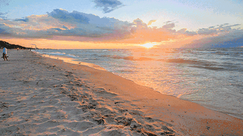 只有海风、涛声和日出、夕阳......