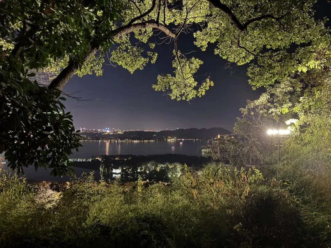 今天的月亮很大很亮,繁华喧闹的西湖恢复了工作日时的安静。
