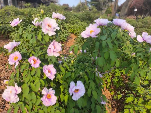 全园共有约4个品种牡丹初开,主要分布在生产科技园、华夏园等处。