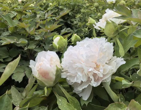 盛开的牡丹品种有:古城春色、明星、黑豹、冠群芳、蓝月亮、富贵满堂 、洛阳红 、春柳、如花似玉、彩绘等;