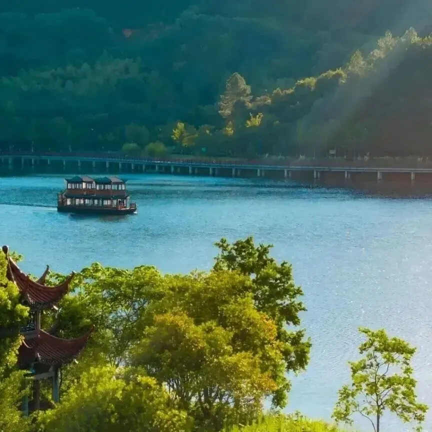 乘画舫游湖,吹着湖风赏清明湖景;登聚远楼远眺山城全貌,顺路逛矿冶博物馆,了解德兴铜都历史,轻松惬意。