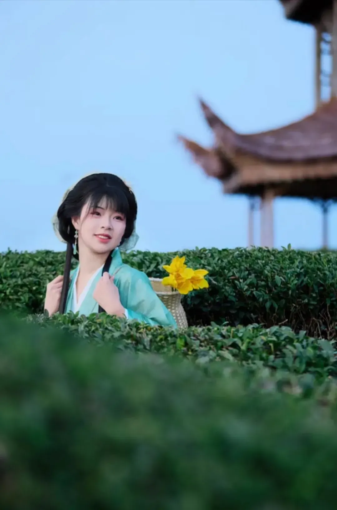 戴上斗笠、背上小竹篓,跟着当地人一起采茶叶,茶叶嫩嫩的,过程好玩又解压。