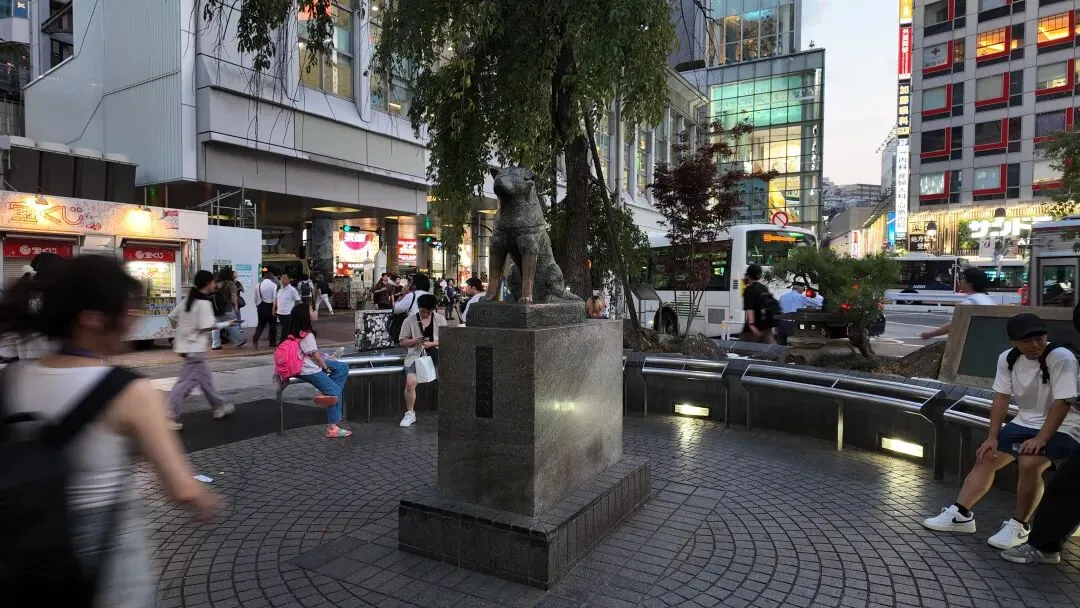 ▲十字路口的一边,是忠犬八公的青铜雕像,同名电影的主角秋田犬。这里也是热门的游客打卡点。