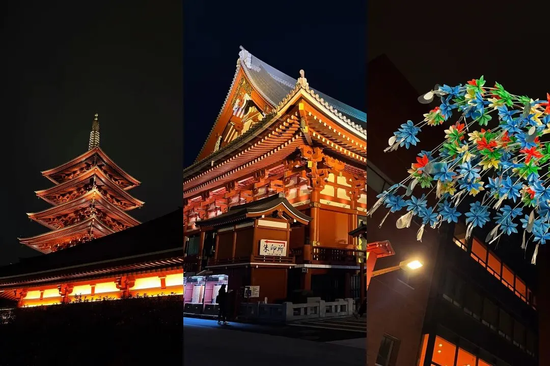 ▲日落后,浅草寺会亮起灯,寺庙恢复了宁静,只有零星来散步的人。