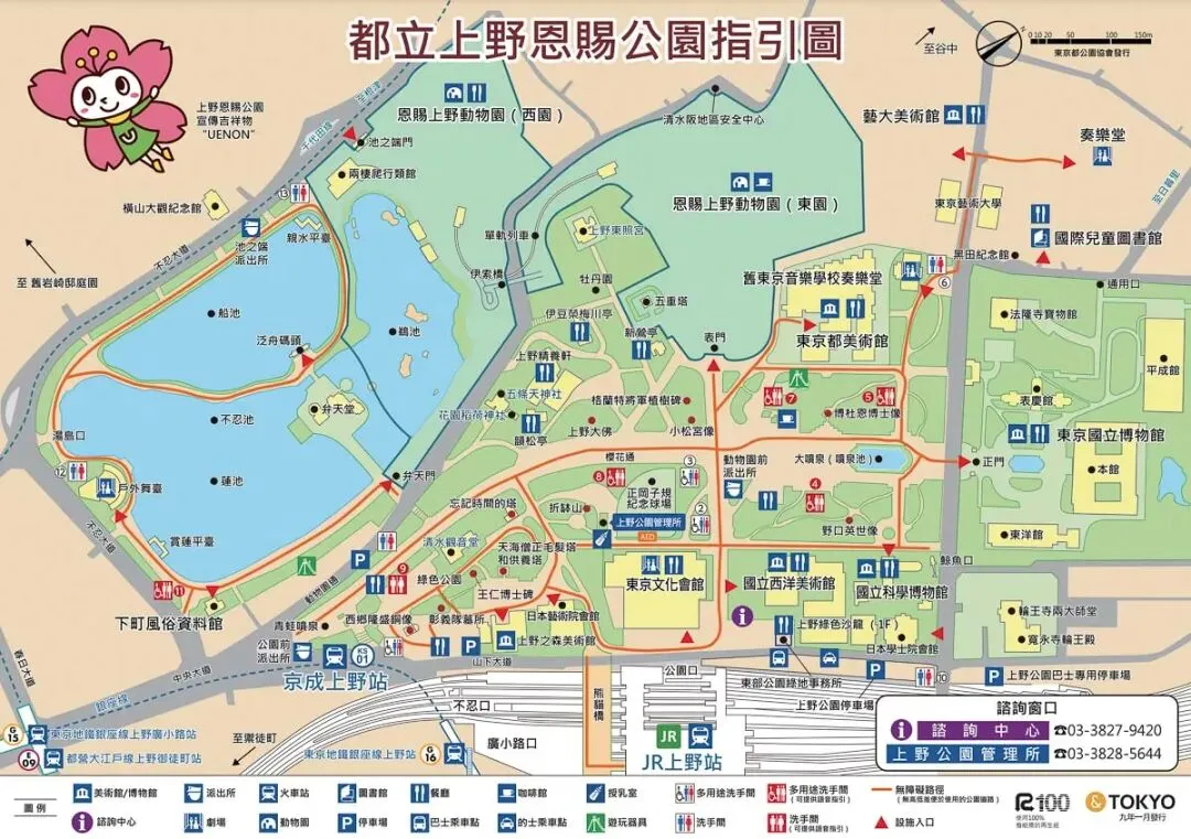 上野公园是日本第一座公园, 这里有上野动物园、上千棵樱花、不忍池等景点。除了自然风光之外,上野公园的文化艺术气息也很浓郁,多家博物馆坐落于此。这些博物馆里历史最悠久的是东京国立博物馆(东博),成立于 1872 年。