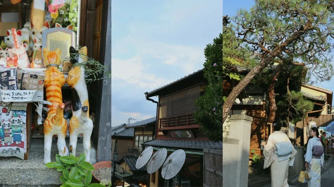 从三年坂往八坂神社方向走,会路过高台寺和灵山观音。