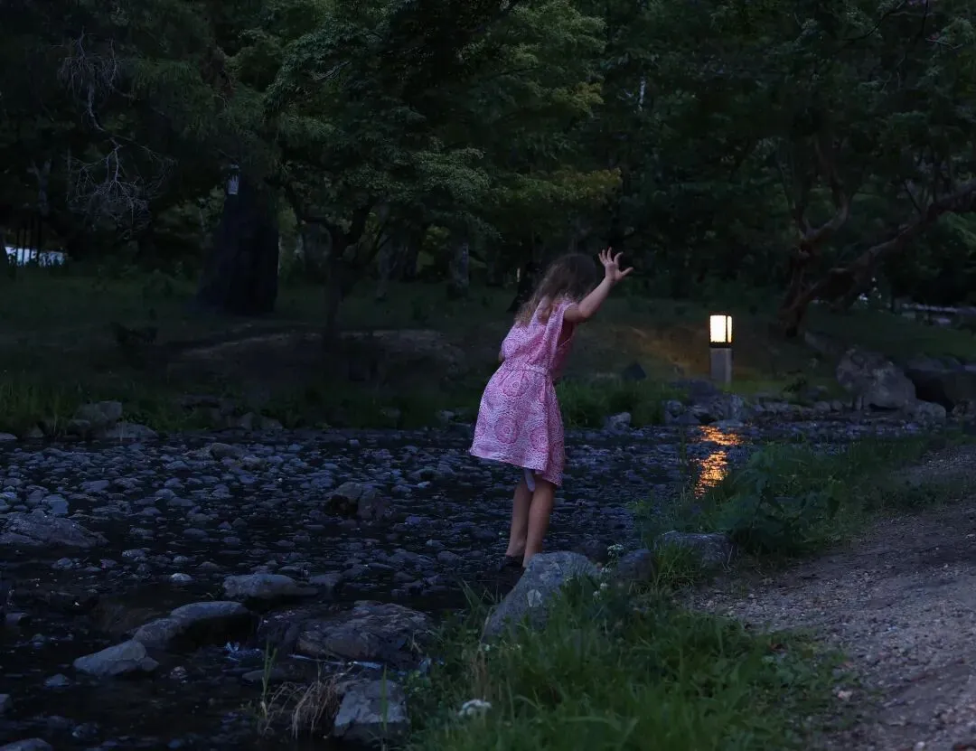 ▲傍晚时分的圆山公园,宁静恬然,有个穿粉色裙子的小女孩在溯溪玩耍,像是童话里的小仙女,时间在这里仿佛变得很慢。