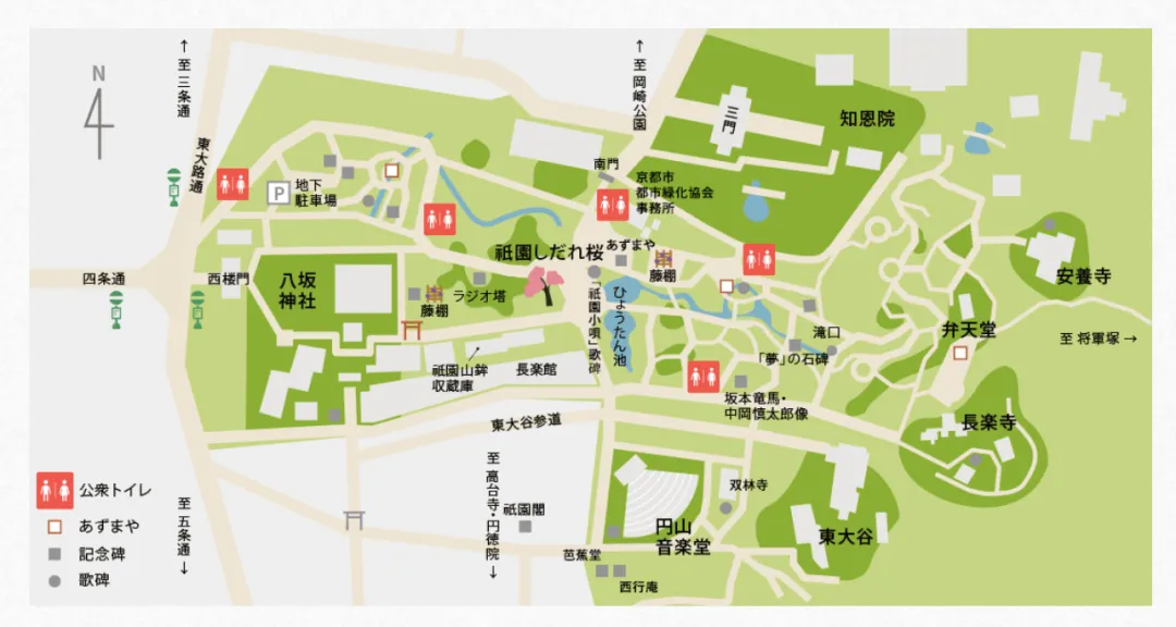 在八坂神社里走着,不知不觉走到圆山公园。圆山公园是京都最古老的公园,占地8.6万平方米。这座公园是由小川治兵卫设计建造的。我们这趟京都的旅行路线,大部分是围绕小川治兵卫的庭园作品展开的。