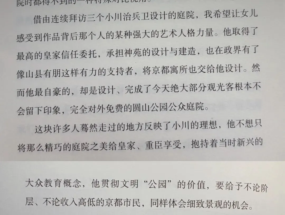 杨照老师在《阴翳、女性与风流: 谷崎润一郎》书中,有一段关于小川治兵卫的话,让人感动。居然,对公众免费开放的圆山公园,是最令小川自豪的作品。时至今日,小川作庭的庭园仍有不少是私人宅邸,不对外开放。