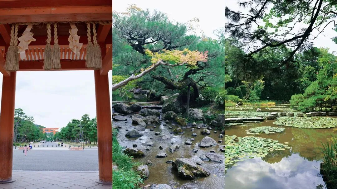 平安神宫建成于1895 年,是为纪念京都建都 1,100 周年而建造。明治维新后,日本的首都和皇宫从京都迁到东京,京都的经济和人口大幅衰落 ,当地希望通过诸多复兴项目来重振古都的辉煌,这便包括修建如平安神宫这样的大型建筑物。平安神宫的建筑物风格受到中国唐代首都长安的影响,围绕神殿的东、西、南、北神苑四座庭园典雅优美,由小川治兵卫设计建造。