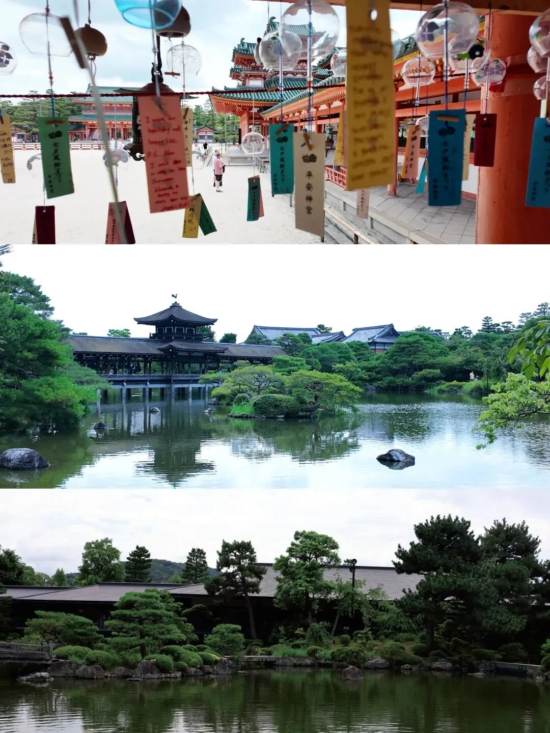 ▲平安神宫的几座走廊上有很多风铃,湖里有很多胖乎乎的锦鲤和乌龟。