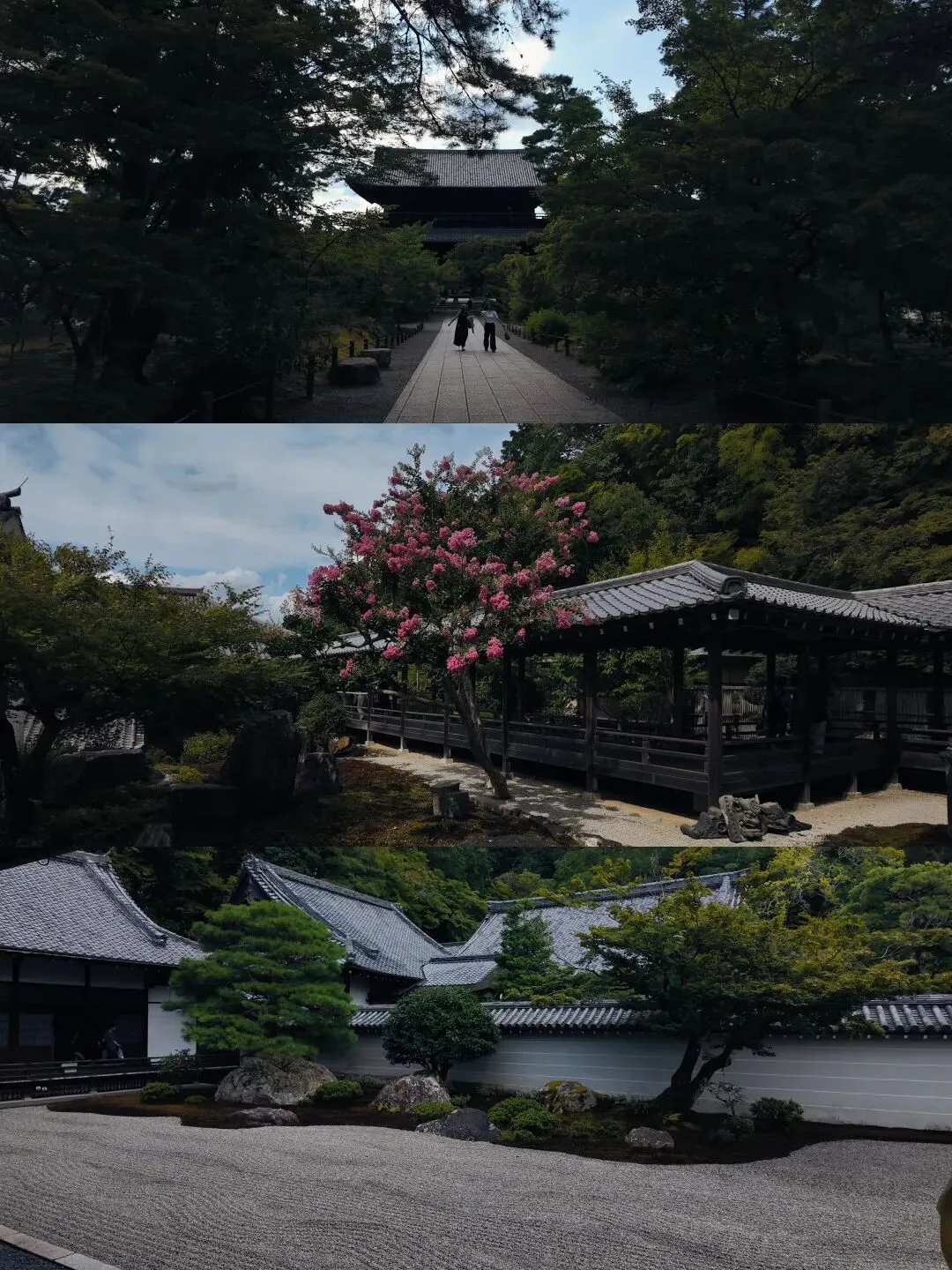 ▲三门位于南禅寺的入口,象征修行时为达到顿悟所必经的三道关卡(空、无相、无作)。穿过三门,满眼只见成片绿森森的枫树,仙气飘飘。