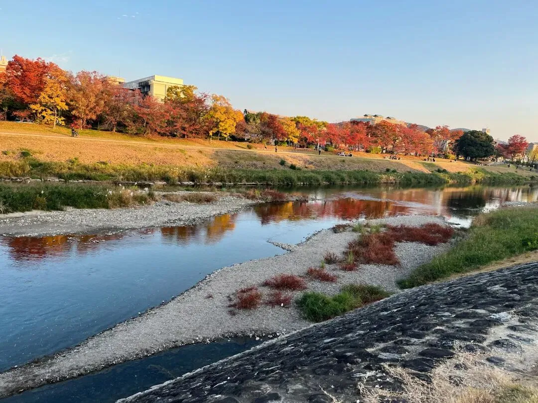 ▲秋天的鸭川很美,河岸边可以遇到来散步、游玩、练琴的当地人。