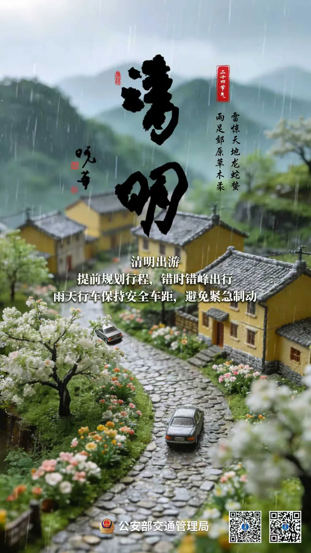 清明时节雨纷纷,驾车出行,牢记控制车速,保持车距,避免急打方向、紧急制动。
