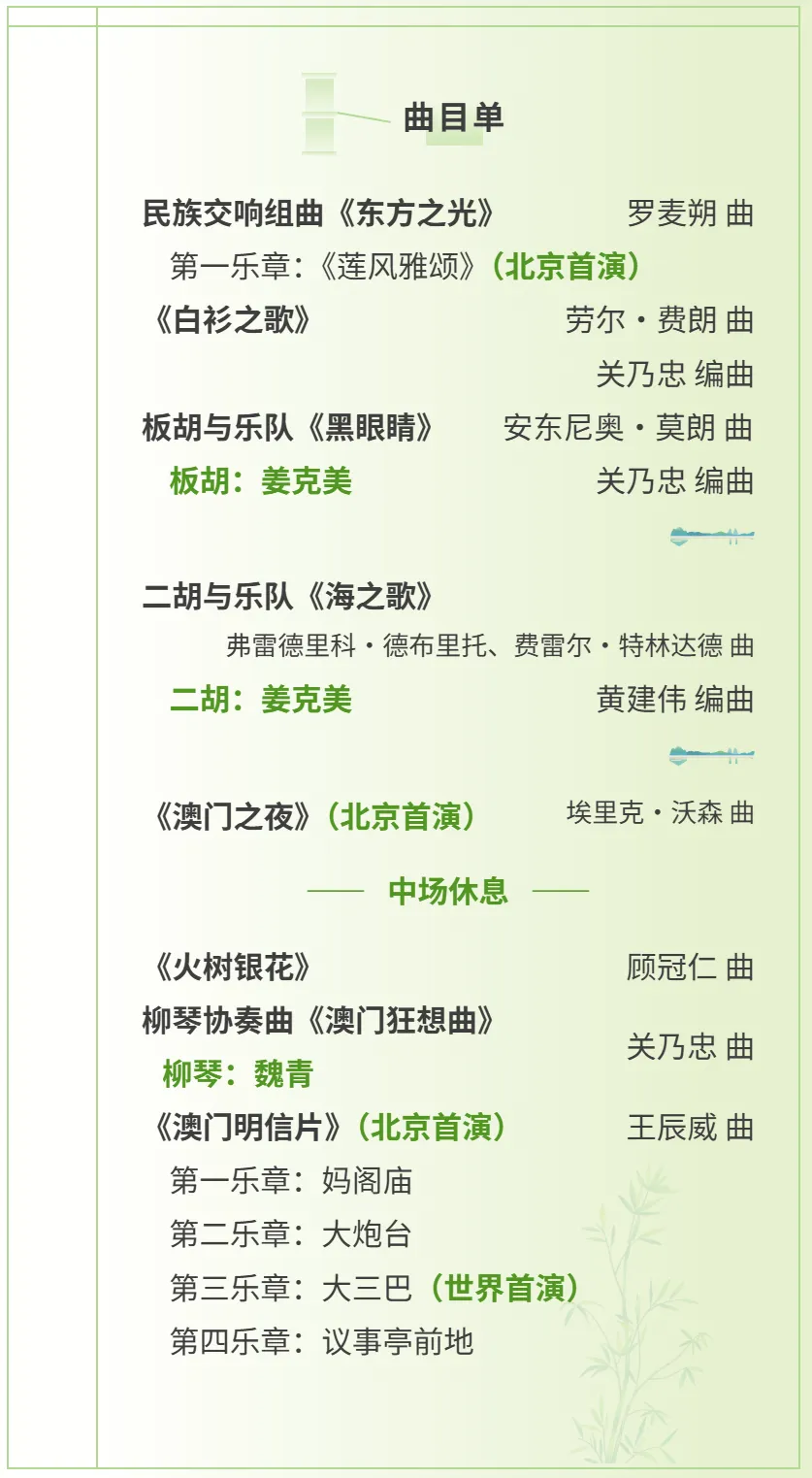 澳门中乐团此番进京,将呈现其多年深耕的创作成果,更以音乐诠释澳门作为文明互鉴之城的独特魅力,为“国乐之春”的舞台增添一抹来自南海之滨的动人亮色。