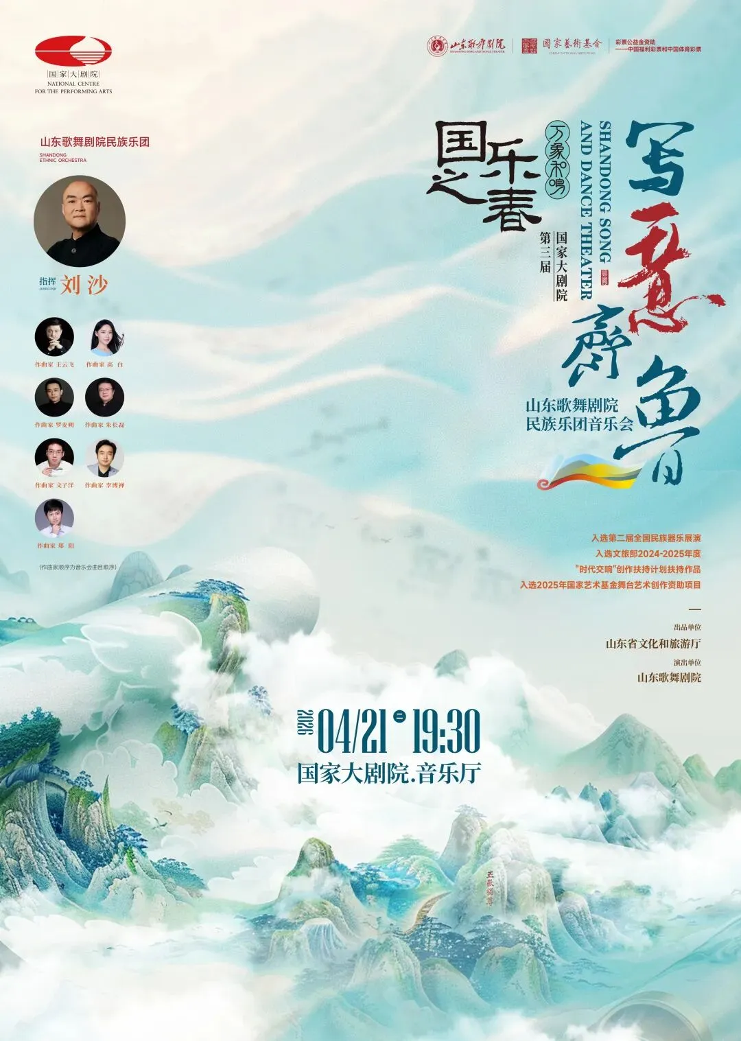 4月21日,《写意齐鲁》山东歌舞剧院民族乐团音乐会将在指挥家刘沙的执棒下,以“音乐写意”为主轴,释“齐风”,解“鲁韵”,围绕“一山一水一圣人”的文化意象,展开一幅全景式的齐鲁音画。