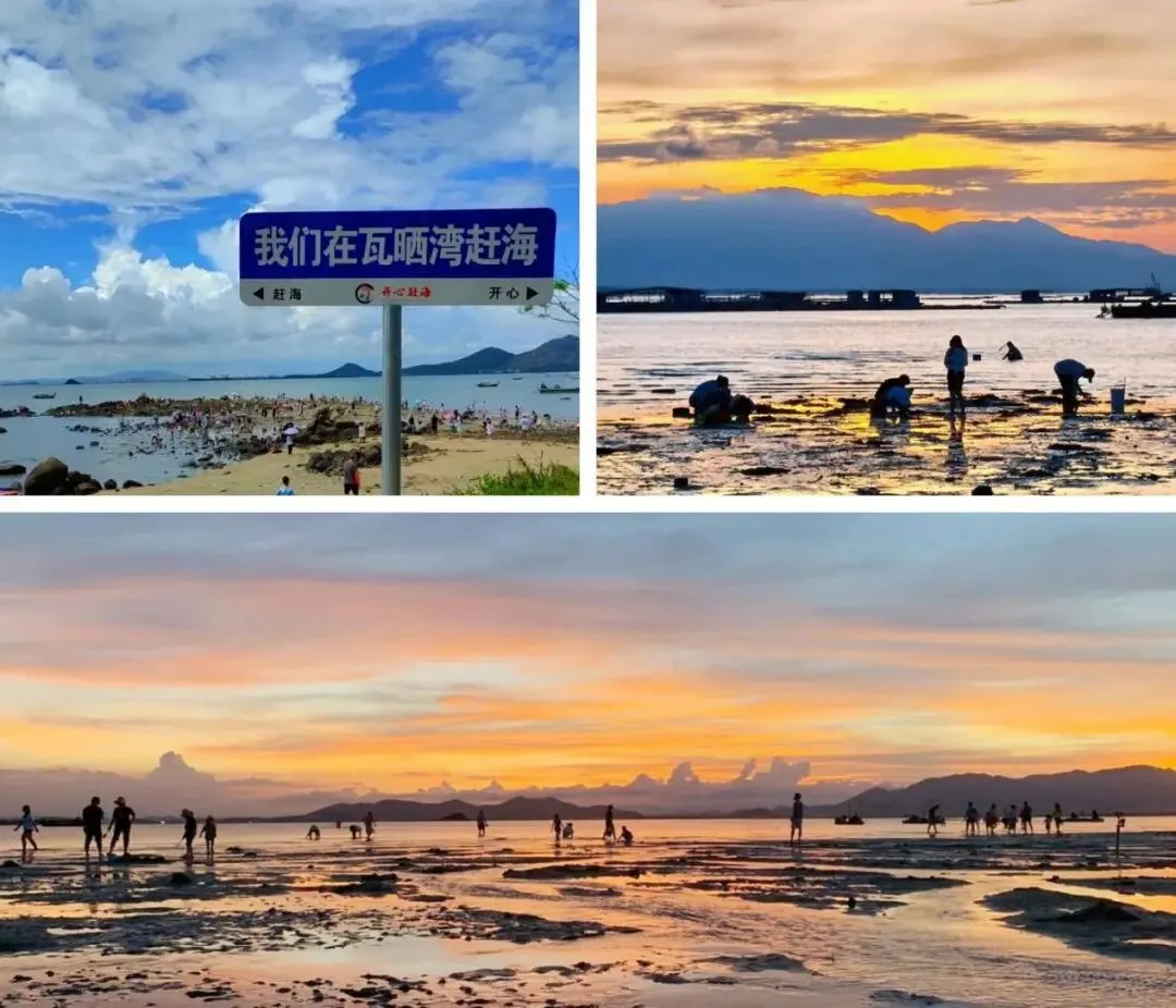 午后体验瓦晒湾赶海,赶在潮落时分提着小桶挖海螺、抓螃蟹,感受疍家渔猎乐趣。