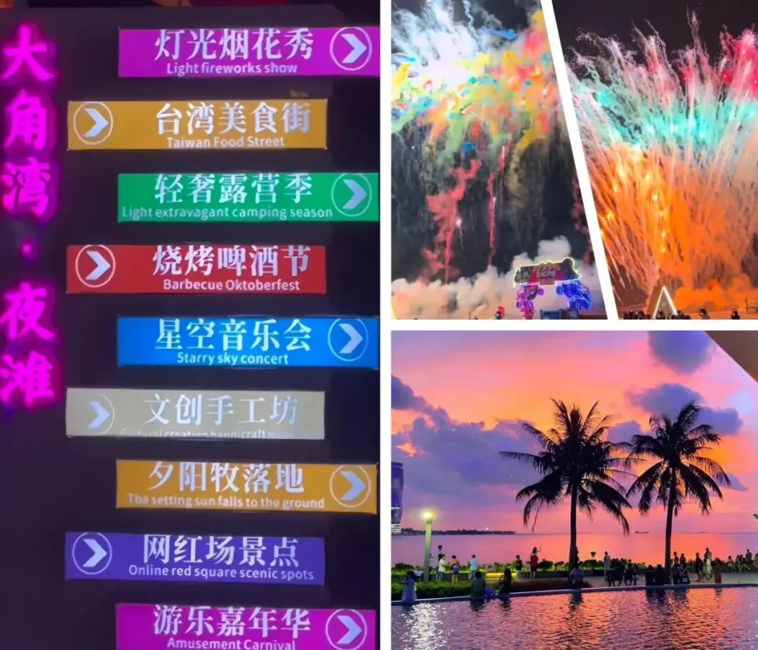 晚间返回大角湾,海上乐园夜泳场开放,增设落日舞台,沉浸式夜间体验活动。