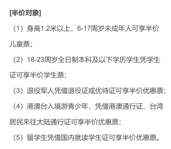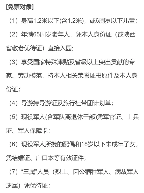 华清宫成人票120元(含华清宫、骊山等景点),学生票60元,西安市民特惠票40元,1.2米以下或6岁以下儿童、65周岁以上老人、军人等可享免票。具体优惠政策可参考下图: