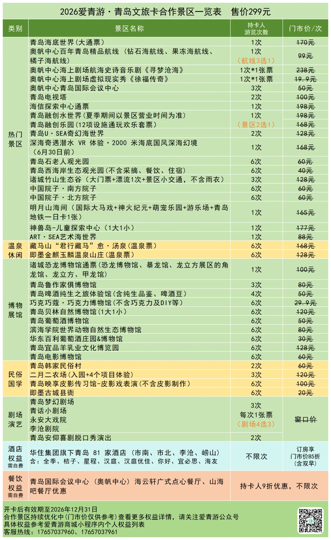 📌使用方法:购卡激活后,在爱青游小程序预约,预约成功后在景区扫码核销使用。