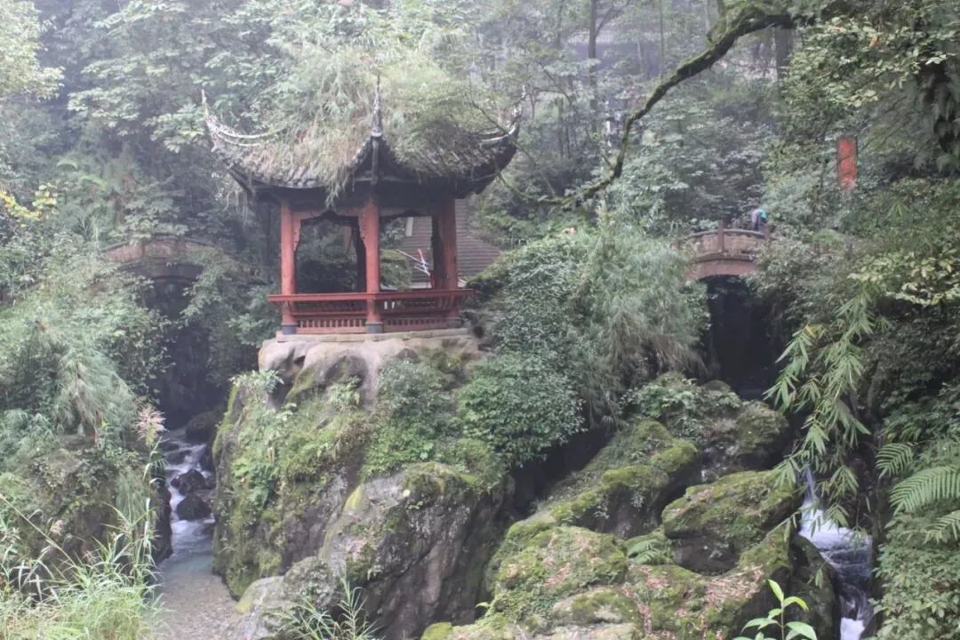 两桥中间的接王亭,建于明初,朱元璋之子蜀献王朱椿游览峨眉山,众僧在此恭迎。