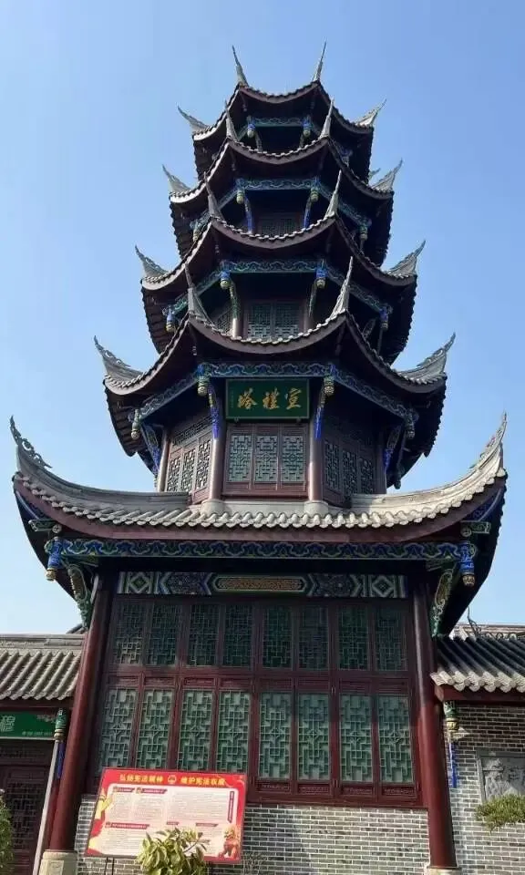 塔身的“宣礼塔”匾额清晰可见,既是宗教文化的载体,更是中式建筑美学的完美呈现。