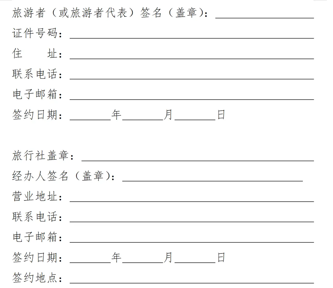 ④建议嵌入行程单或出团通知书或旅游合同补充条款中。