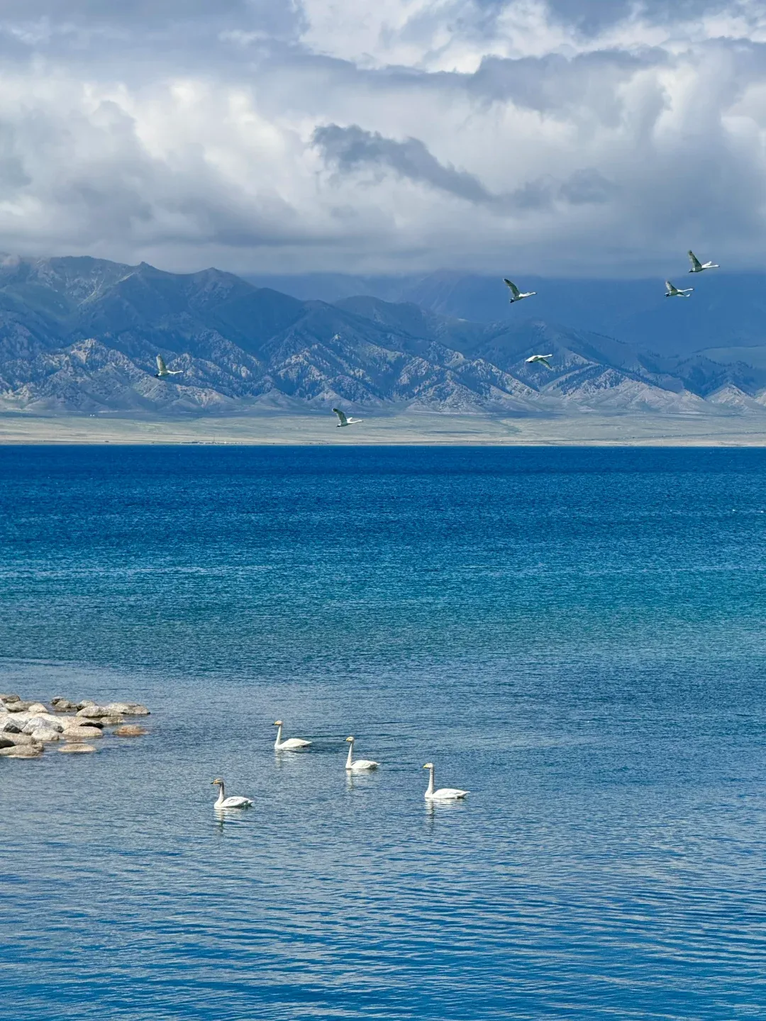 交通: 🚗游玩方式怎么选最省心 自驾:新疆地广景美,适合老司机,但路线复杂、限速严格 包车 /独立成团 :自由度高,适合小团体 拼车纯玩小团:新手首选,不用做攻略、不用抢票、不用找车,全程省心 二、5 月新疆必去 8 大精华景点 1. 赛里木湖 💧 门票:145 元 / 人(自驾入园) 开放时间:全天(建议 8:00 前入园避人流) 被誉为大西洋最后一滴眼泪💧,5 月的赛里木湖冰雪初融,湖水澄澈如蓝宝石💎,倒映着连绵雪山与蓝天白云,湖畔金莲花、报春花次第绽放,风过处花海摇曳,日出时湖面鎏金,日落时晚霞染湖,一步一景皆是治愈系仙境。 详细游玩攻略: 1.自驾顺时针环湖,全程约 90 公里,重点打卡:S 弯公路(出片天花板)、亲水滩(近距离触湖)、松树头(雪山湖景同框)、天鹅乐水(偶遇野生天鹅); 2.预留 4-5 小时,上午拍湖景光线最佳,下午拍日落,可自带野餐垫在湖畔草坪小憩; 3.想拍小众视角,可前往北门附近的山坡,俯瞰全景无遮挡。 避坑指南: ✅ 别穿白鞋,融雪水易湿脚 ✅ 湖边风大,务必穿外套 ✅ 五一提前预约,不现场排队