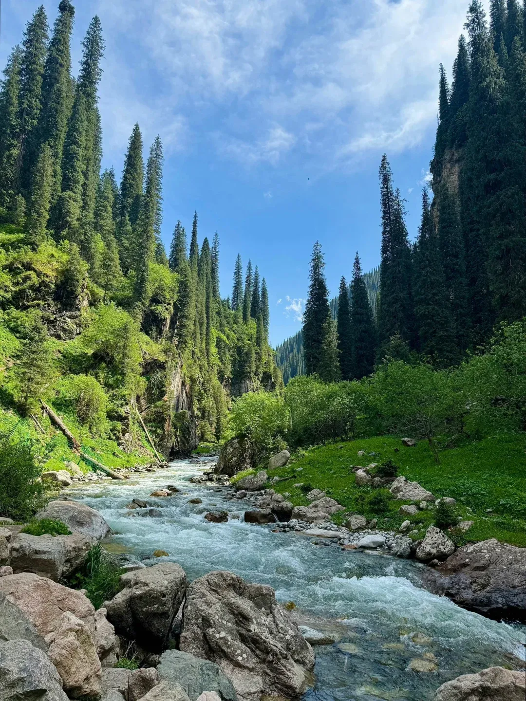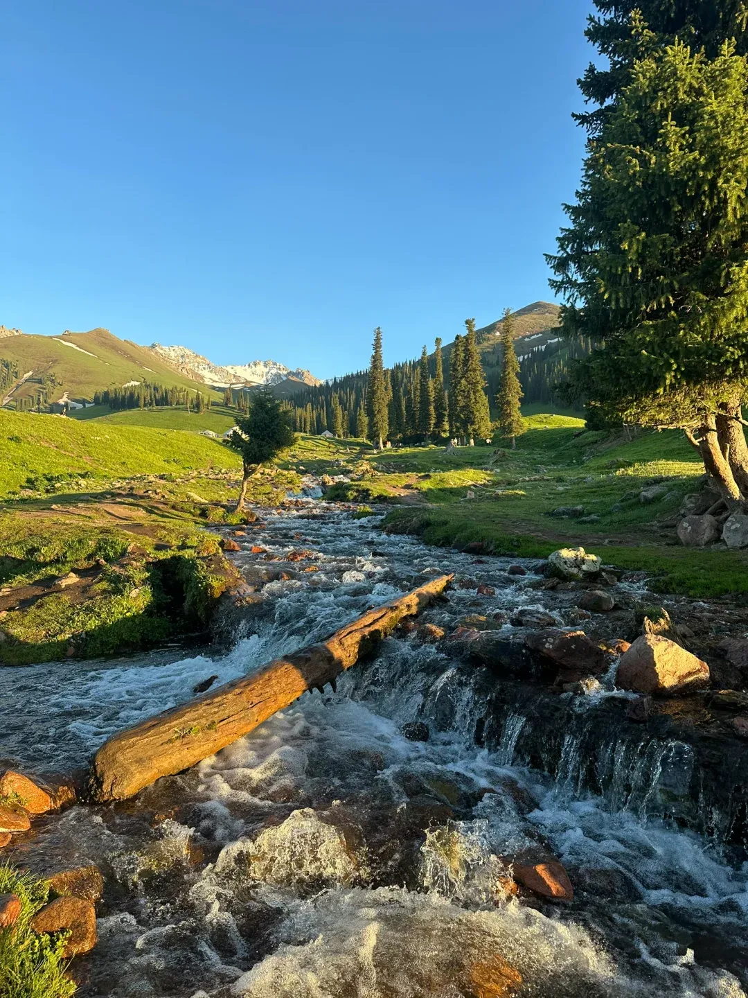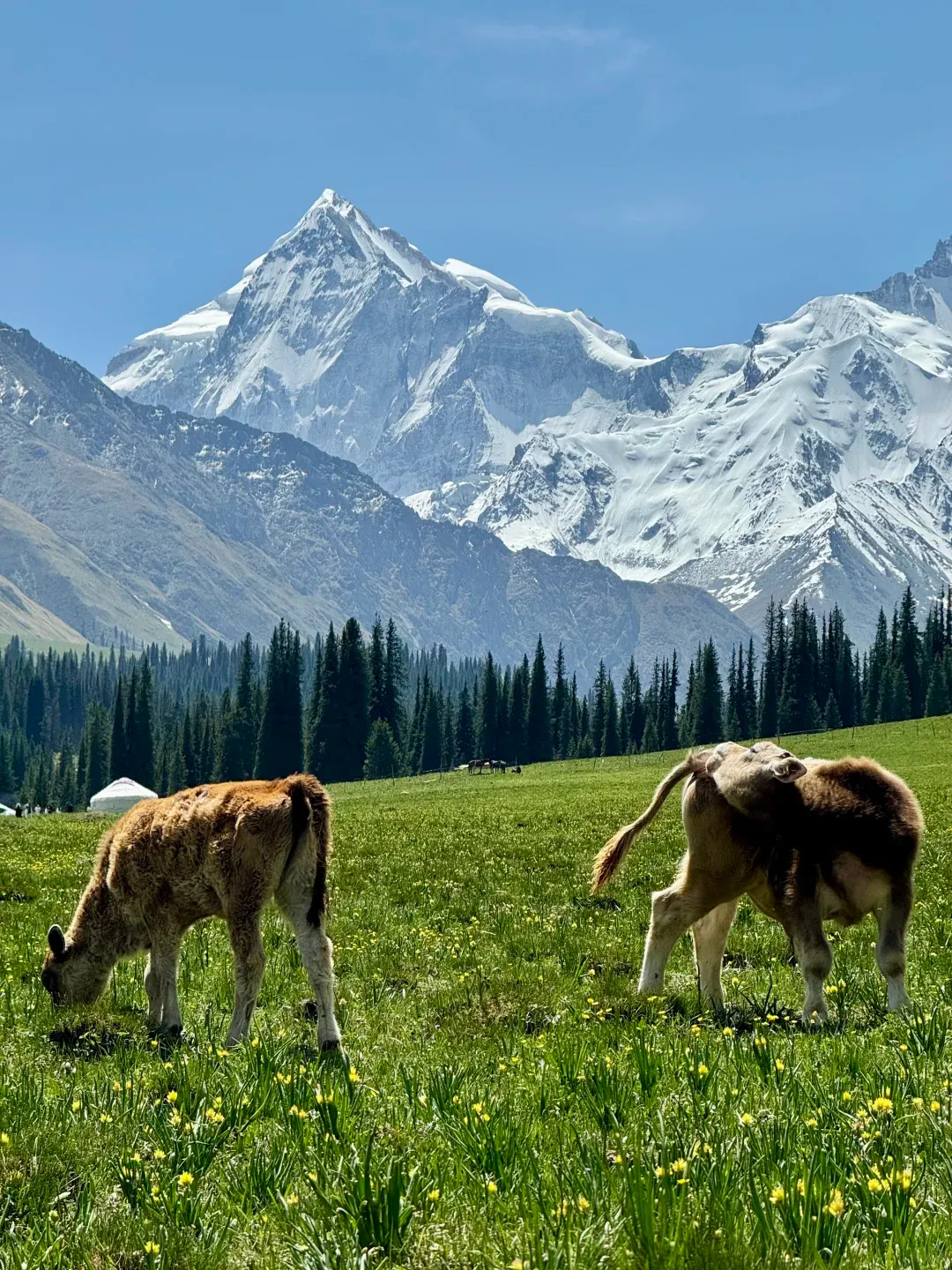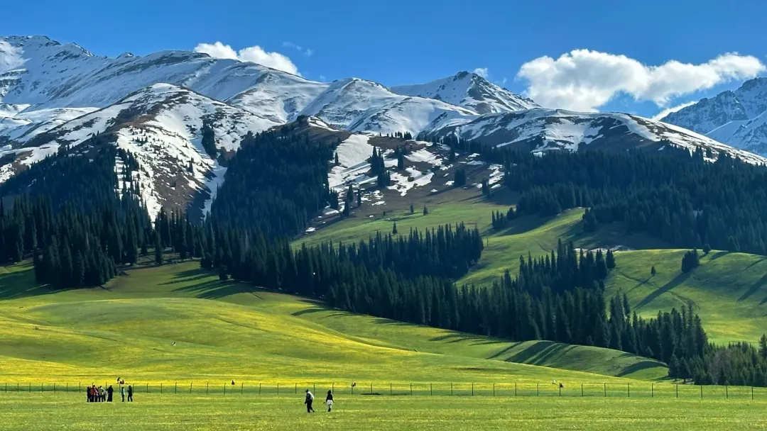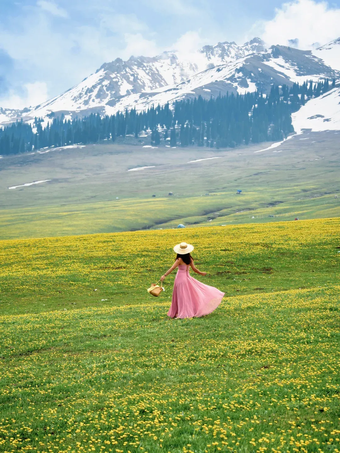 5. 库尔德宁 🌳 门票:60 元 + 区间车 48 元 开放时间:10:00-22:00 天山云杉的故乡,5 月雪山巍峨、云杉苍劲,草原嫩绿如毯,溪流叮咚穿林而过,森林、草原、雪山完美融合,既有雄奇壮阔的山野之美,又有温婉静谧的田园风光,徒步友好,氛围感拉满。 详细游玩攻略: 1.乘坐区间车直达喀班巴依峰观景台,俯瞰连绵云杉与草原,远眺雪山全景; 2. 走轻徒步线路(1.5-2 小时),穿行云杉林间,听溪流鸟鸣,拍森林光影大片; 3.打卡网红森林木栈道,背靠云杉、面向草原,拍原生态治愈系照片; 4.傍晚在观景台等日落,雪山染金、森林披霞,绝美又震撼。 避坑指南: ✅ 区间车必坐,景区面积大,步行不现实 ✅ 不采摘野花,保护植被