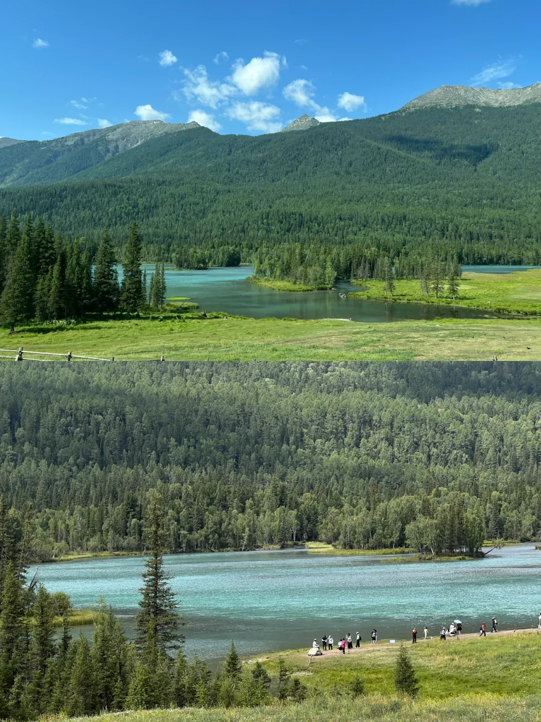 6. 喀纳斯 🍃 门票:160 元 + 区间车 70 元 开放时间:8:00-18:30 人间仙境、神的后花园✨,5 月的喀纳斯冰雪消融,湖水碧绿如翡翠,神仙湾薄雾缭绕似仙境,月亮湾蜿蜒柔美如月牙,卧龙湾静卧河畔似卧龙,森林新绿、溪流潺潺,一步一景皆如画,仙气十足。 详细游玩攻略: 1.经典玩法:区间车依次打卡三湾(神仙湾→月亮湾→卧龙湾),月亮湾徒步至卧龙湾(1 小时),沿途拍湖景森林; 2.必登观鱼台(需另付 20 元),俯瞰喀纳斯湖全景,远眺雪山湖泊,视野无敌; 3. 清晨 6-7 点前往神仙湾,拍晨雾缭绕,宛如置身水墨画卷; 4.预留 5-6 小时,深度感受喀纳斯的静谧与壮美,避开中午人流高峰。 避坑指南: ✅ 五一提前 5 天预约门票 ✅ 不坐黑车,统一坐景区区间车 ✅ 早晚冷,带薄羽绒