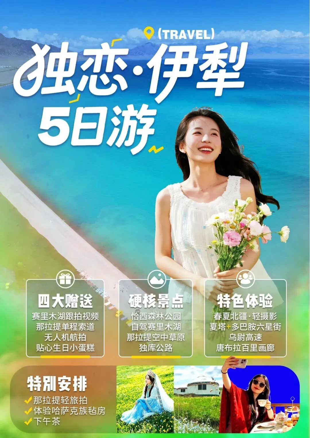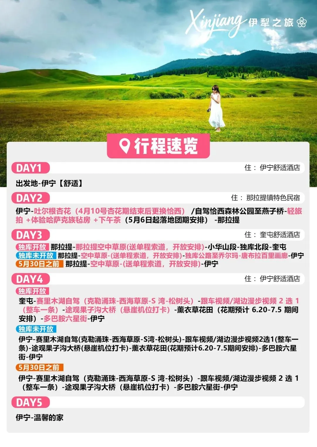 三、“五一”出行爆款行程及跟团推荐 五一假期时间短优先选择落地伊宁,五天四晚行程不赶路~