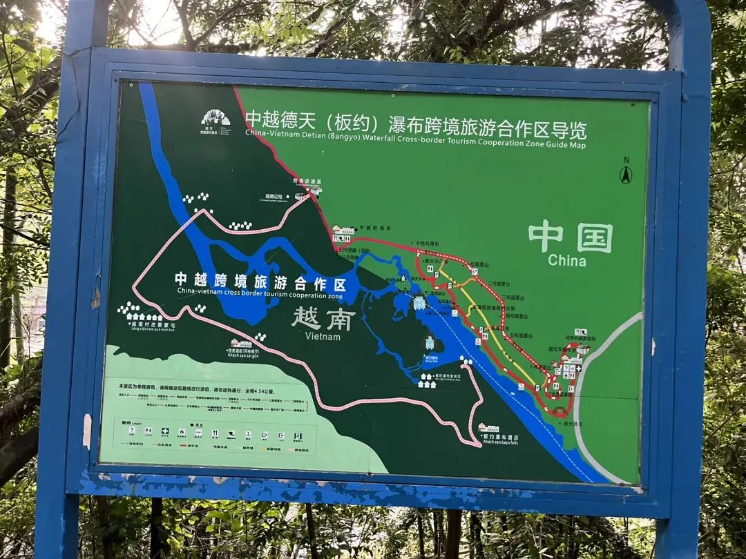 德天瀑布景区实行“游客集散中心→景区入口”的摆渡车制度,旺季排队1小时是常事。