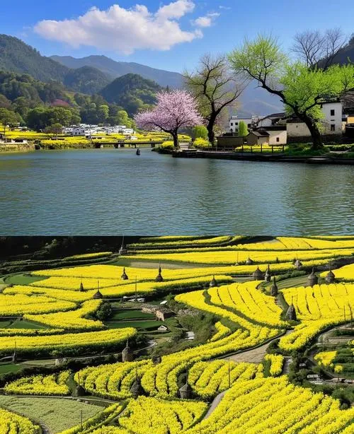 三月的婺源和前两个月又不一样,这个地方卖的不是极端气候,卖的是季节限定。很多人以为婺源就是油菜花,但你真去了会发现,徽派建筑配上漫山遍野的黄色,这种组合在中国其他地方很难复制,不是说别的地方没有油菜花,是那种白墙黑瓦加上金黄色的视觉冲击,只有婺源能做到这个浓度。