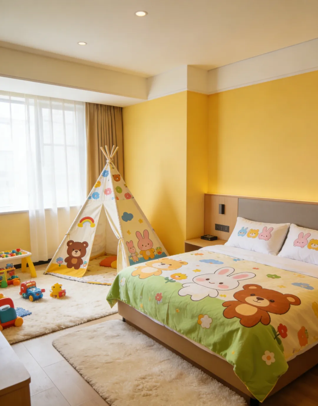 ✔️ 新装修,亲子房有卡通帐篷、小木马,可免费借婴儿车