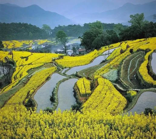穿岩山的油菜花梯田,很多人拍过照,但大部分人不知道这地方真正特别在哪,不在于花有多黄、梯田有多整齐,在于它给你一种"刚刚好"的感觉,不是那种铺天盖地的壮观,是你站在那,觉得这个景刚好够看、刚好够走、刚好不会让你审美疲劳,山的高度刚好,梯田的层次刚好,连花开的密度都刚好。