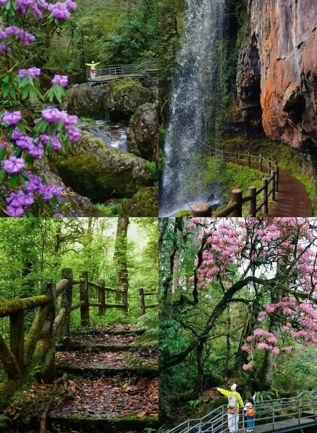 除了珙桐,景区还有峡谷溪流、瀑布群,原始森林遮天蔽日,负氧离子爆棚。徒步全程多为平缓栈道,难度极低,成都自驾 2 小时直达,轻松承包一整片春日秘境。