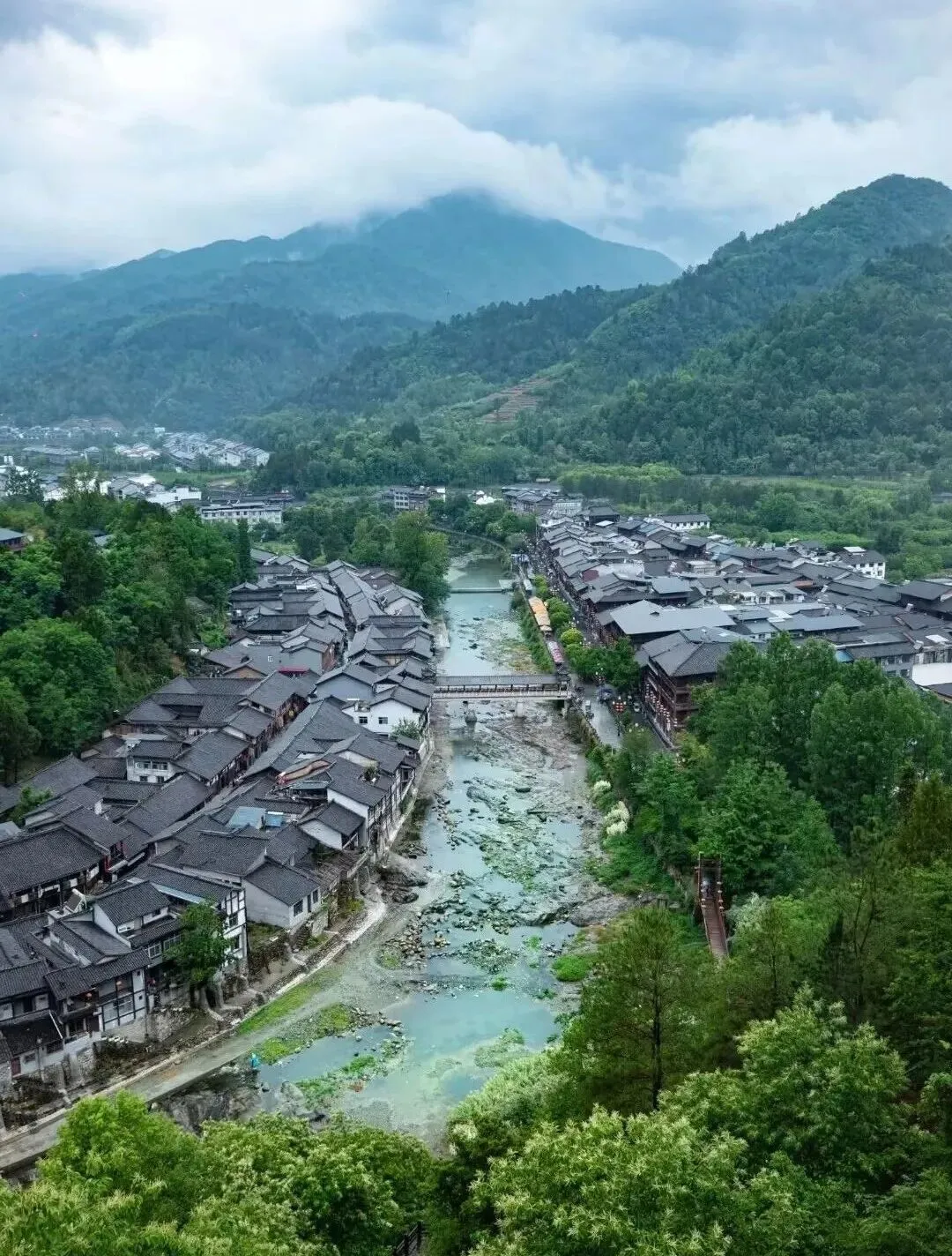 500 年历史的青木川,是真正的边城古镇,一脚踏三省,既有江南水乡的温婉,又有西北边城的豪迈。金溪河绕镇而过,明清古民居、老街、吊脚楼沿河岸排布,白墙黛瓦被青山环抱,原生态拉满。