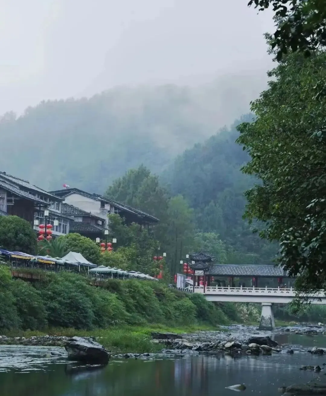 这里没有沿街叫卖的商铺,没有熙攘的游客,只有写生的学生和淳朴村民。4-5 月春雨过后,云雾缭绕、野花盛放,随手一拍都是氛围感拉满的江南水墨大片。