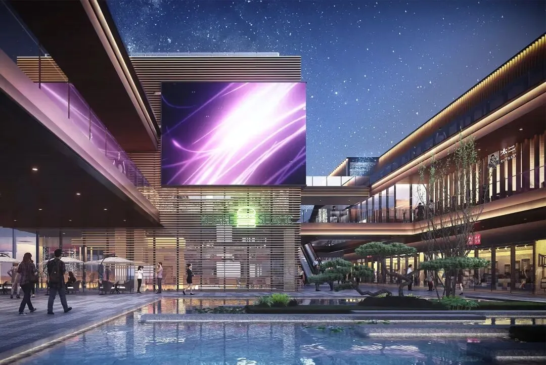 滨河而建的综合体提供了动态的购物与休闲体验。总体规划中的四个庭院分别代表春、夏、秋、冬四季,并配以各组团独特的外立面设计。游人移步异景,进一步激发综合体的整体活力。结合入口处的下沉广场与中心独特的云台,公共空间为城市提供开放的休闲场所,并配有一系列娱乐与餐饮设施。 Situated along a river, the complex provides a dynamic shopping and recreational experience. The four courtyards within the master plan are representatives of the seasons, spring, summer, autumn and winter, complemented with distinctive façade designs of the blocks. Visitors are met with shifting sceneries that also contribute to the overall vitality of the complex. Along with a sunken plaza at the entrance and a unique cloud terrace at the center, public spaces are implemented to provide open, leisure spots to the city, accompanied by a series of entertainment and F&B facilities.