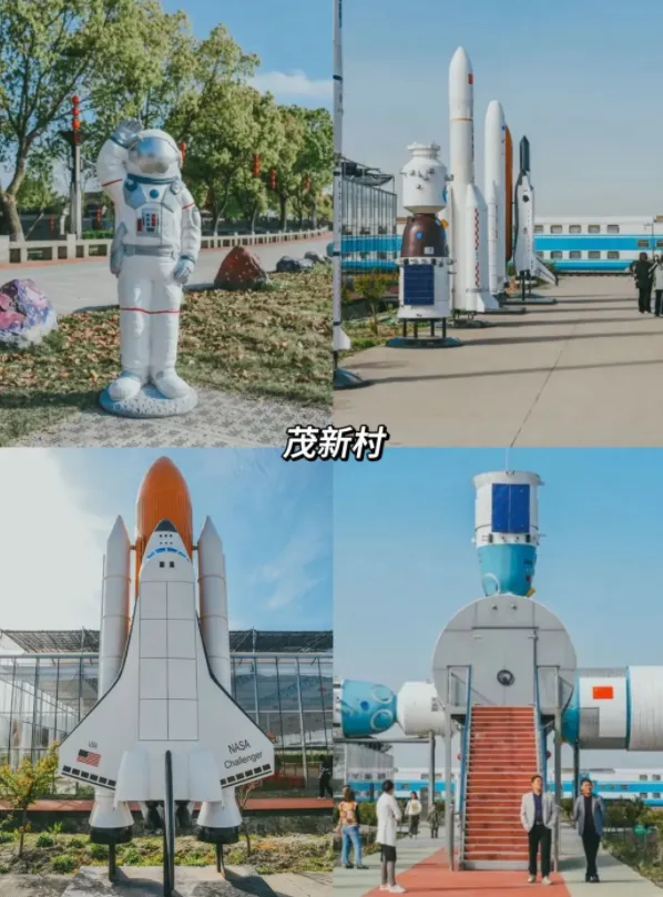 1️⃣茂新村 茂新村拥有300多亩的航天体验及农业观光基地。整个航空休闲区域有一排大型航天模型,和一列超长的蓝色火车。 📍导航:可搜“宁波家风馆”
