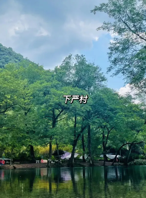 6️⃣下严村 这里可太适合逃离城市去露营了,下严村的水绿得可以见底,古树环绕,风景绝美!超适合和亲人朋友一起团建。