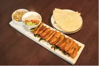 茶香烤肉卷:央视《味道》栏目推荐主打菜,精选本地散养黑猪肉,卷入炒制后的信阳毛尖嫩芽,外皮酥脆,茶香解腻。